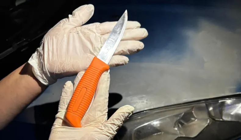 Al acercarse, los efectivos constataron que el vehículo tenía las cubiertas perforadas y que el hombre sostenía un cuchillo en la mano. Los policías interceptaron a Vergara que rodeaba el auto cuando fue identificado.