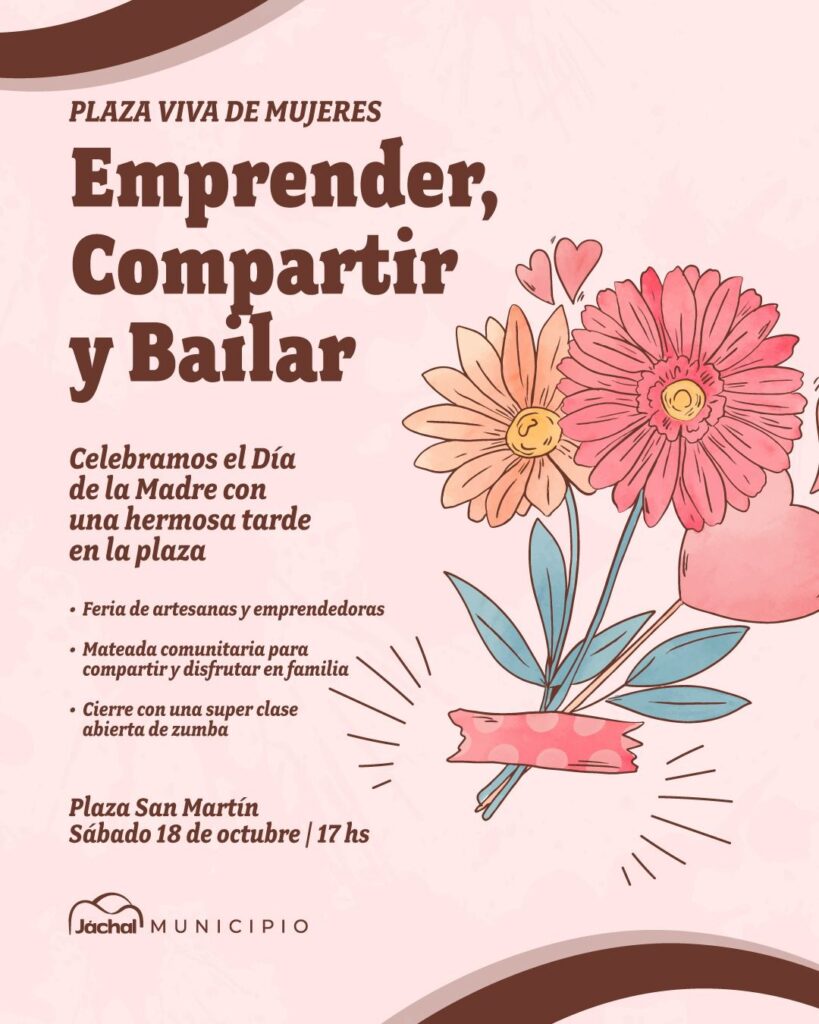 La actividad se denomina “Plaza Viva de Mujeres: emprender, compartir y bailar” y consiste en una jornada donde se llevarán a cabo varias actividades donde toda la familia puede participar, divertirse, homenajear a la mamá y. de paso, podrán buscar algún regalito para el domingo ya que habrá una exposición y venta de productos realizados por emprendedores y artesanos.