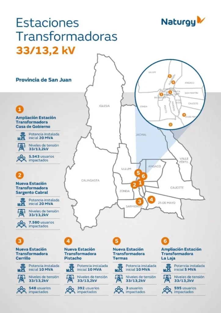 Las nuevas ET corresponden a un plan integral de Naturgy San Juan para brindar un servicio clave para la vida de las personas y el desarrollo productivo de la provincia.