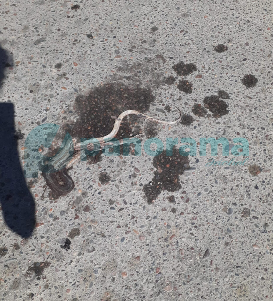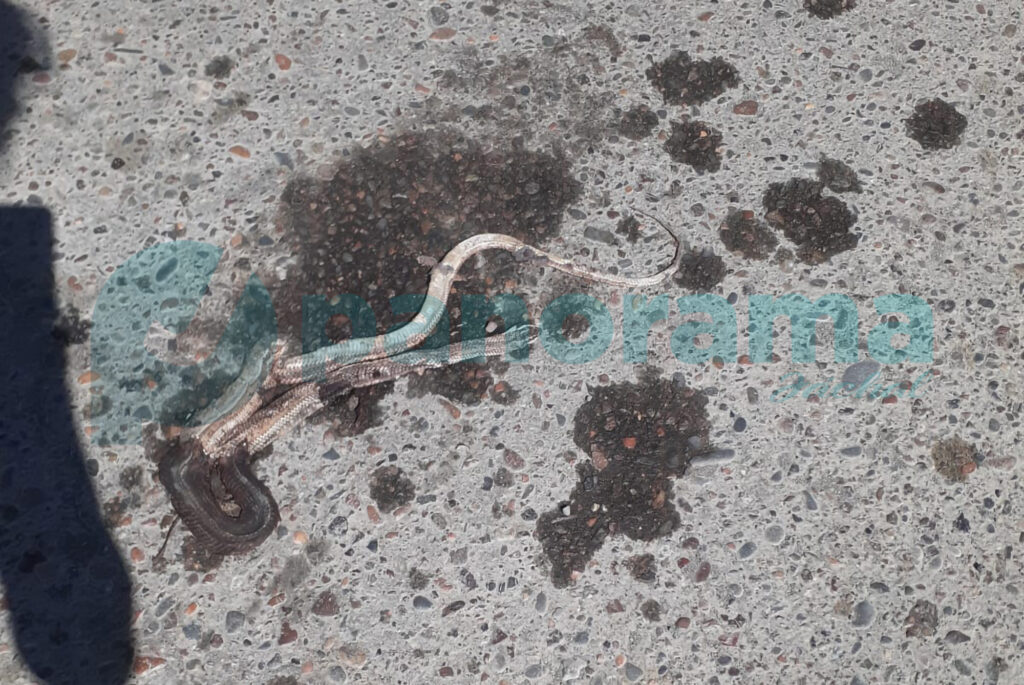 En horas de la mañana de este martes, los jachalleros se encontraron con otra imagen aterradora. Por calle Florida, entre Juan de Echegaray y Sarmiento, en plena calle, otra víbora se apareció a plena luz del día. En esta oportunidad, las personas la encontraron aplastada y sin vida, aparentemente a causa de un vehículo que le habría pasado por encima.