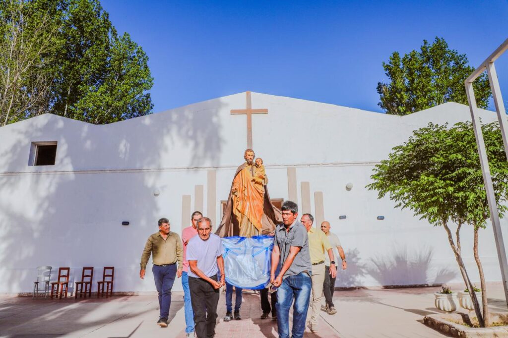 La comunidad agradeció al intendente por su acompañamiento y colaboración en las obras de reparación del techo, las paredes interiores y el atrio de la capilla, trabajos ejecutados con el apoyo del personal de la Delegación Huaco y la participación de la comisión parroquial.